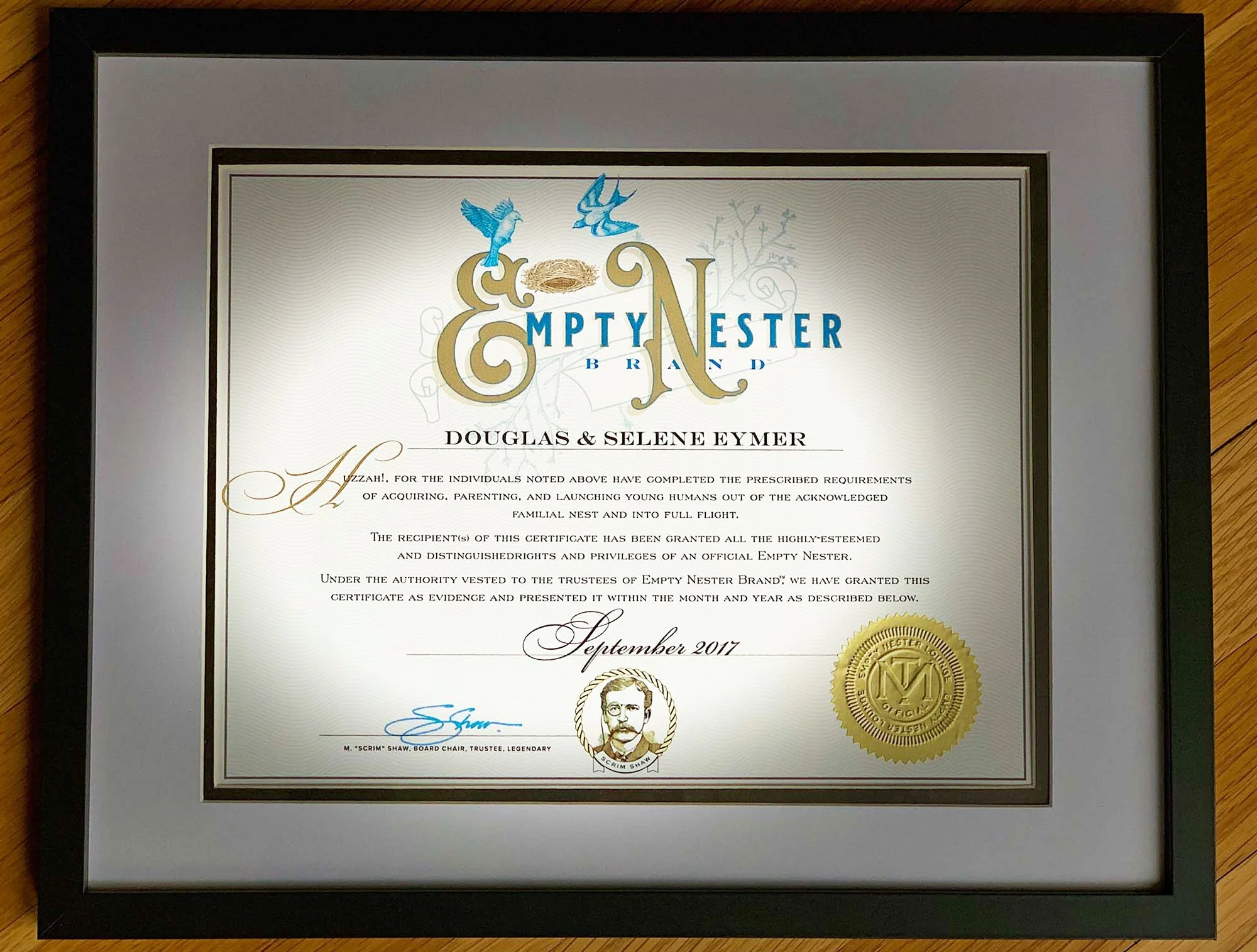 However, our personalized Empty Nester Certificate is the most popular item thus far.